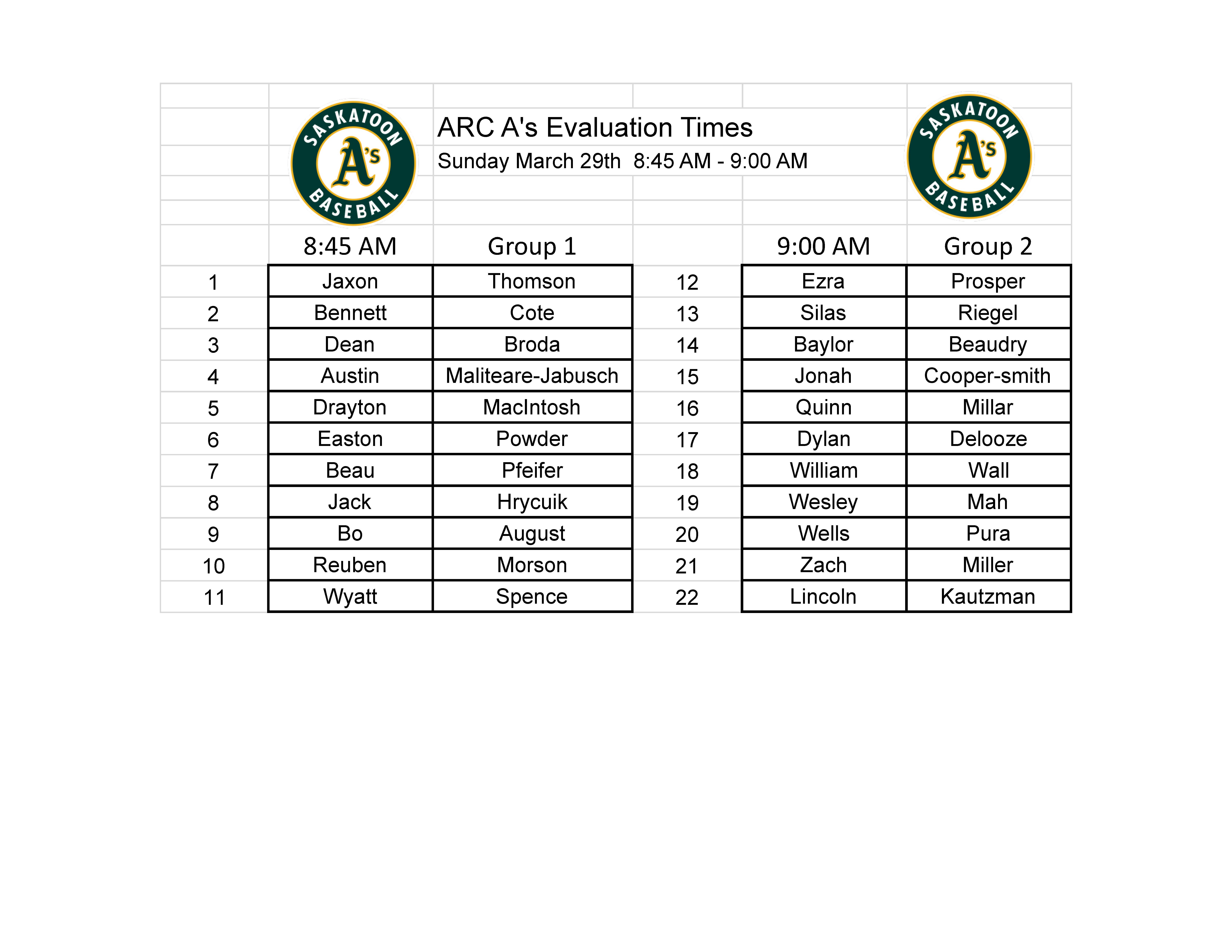 *** Please do not wear any branded academy (ie: Going Yard, Inside Pitch, Saskatoon Berries, etc...) clothing to the evaluation sessions.
