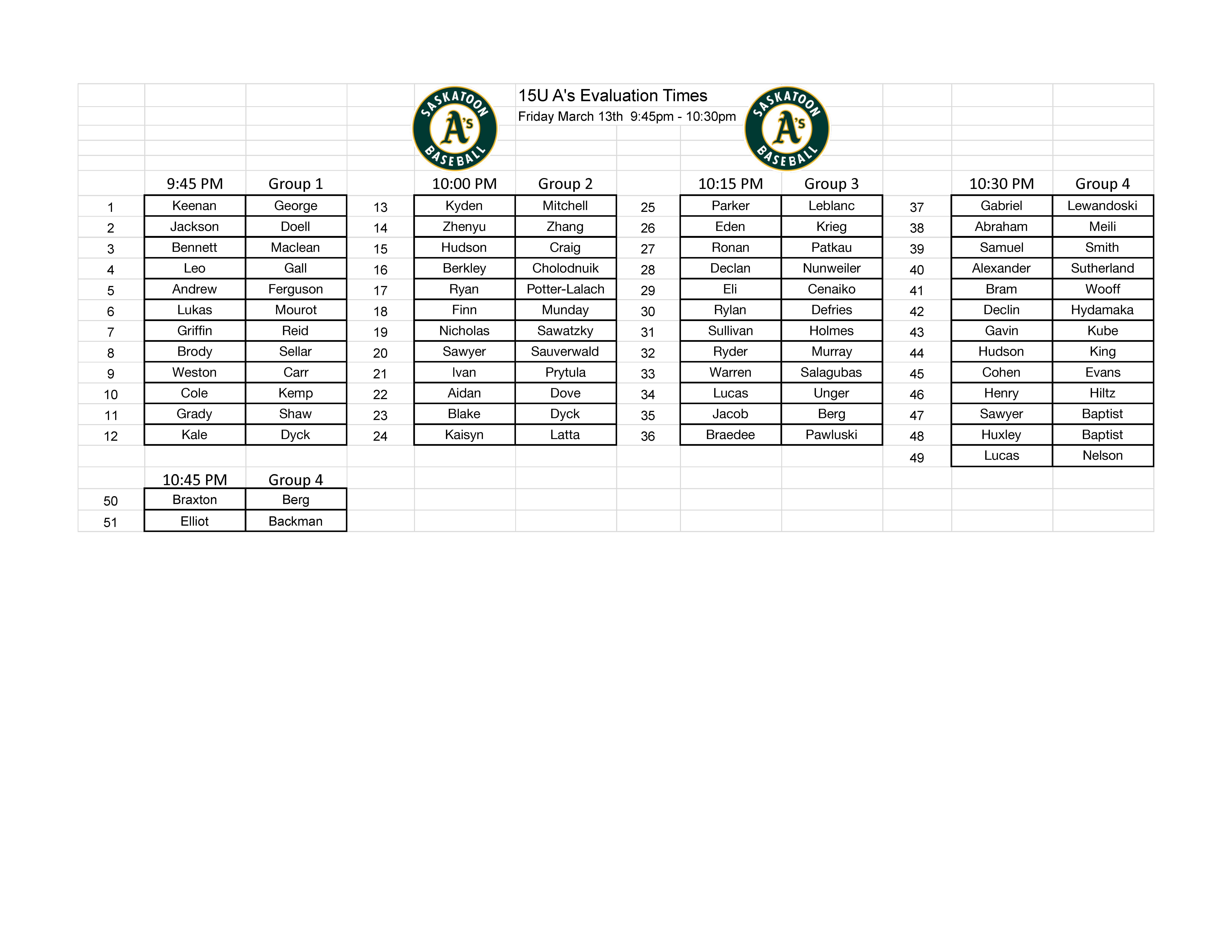 *** Please do not wear any branded academy (ie: Going Yard, Inside Pitch, Saskatoon Berries, etc...) clothing to the evaluation sessions.